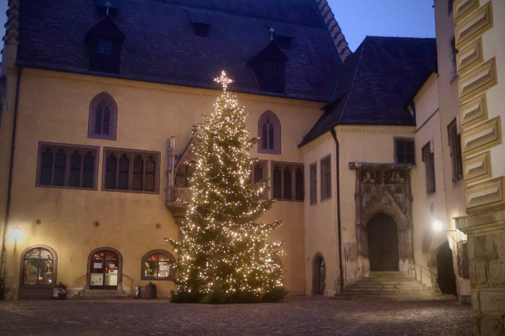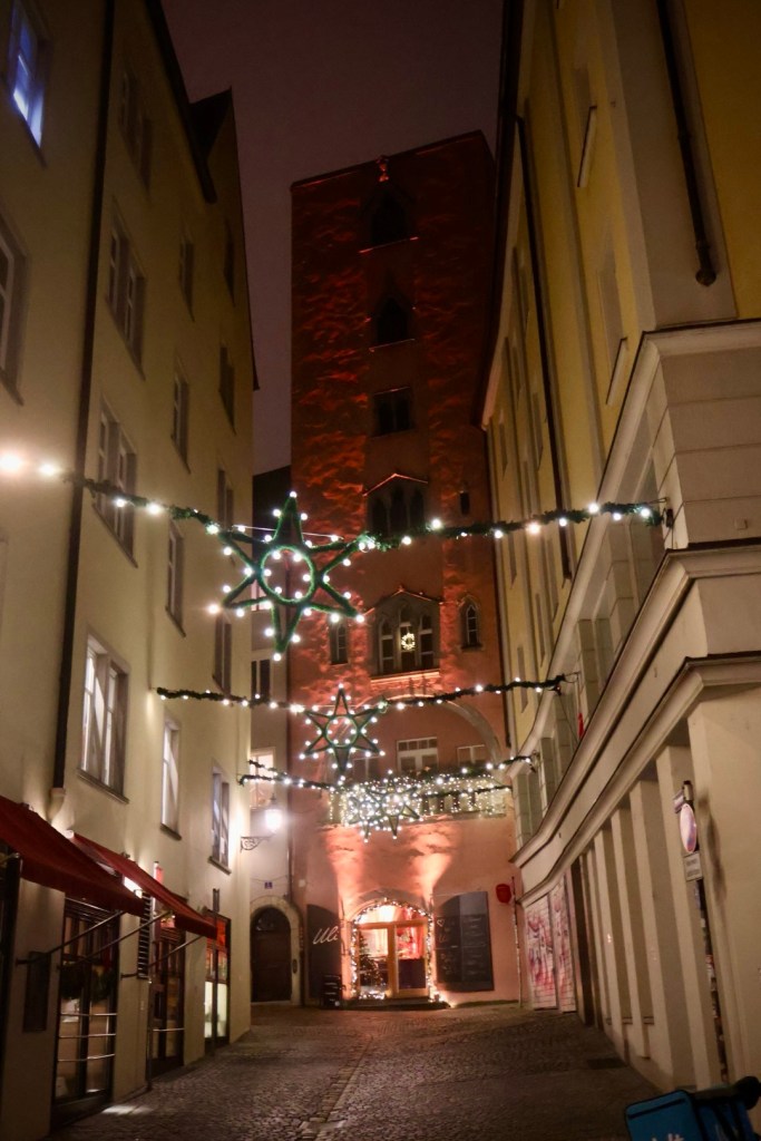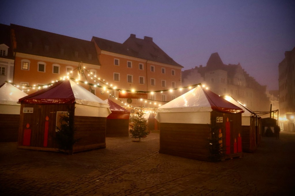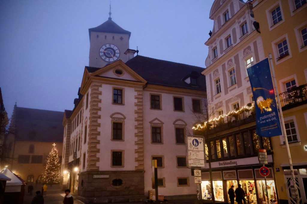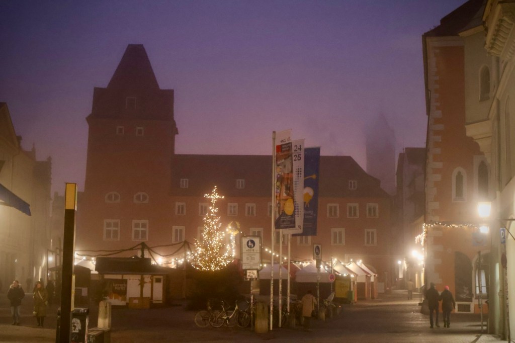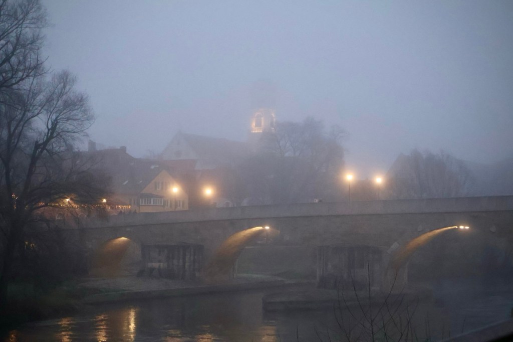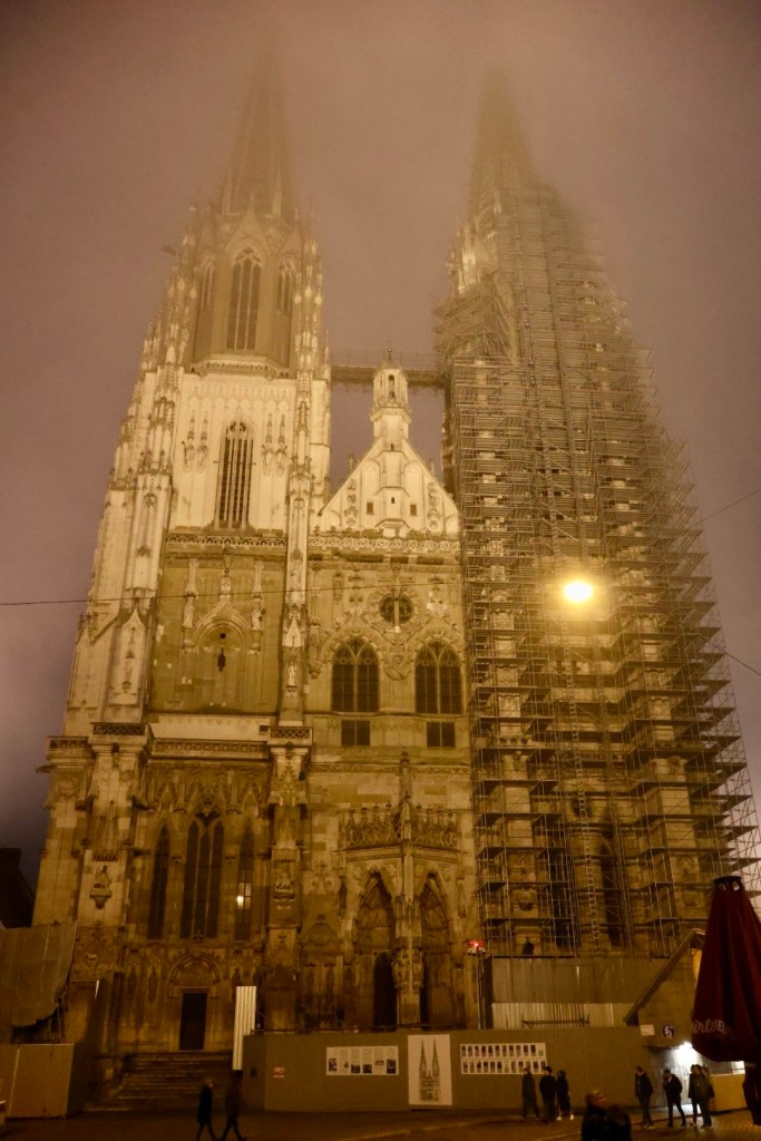 After a relaxing bath and a short rest, we ventured out to explore the city. Regensburg greeted us with fog rolling over the narrow streets of the old town, creating a magical atmosphere. It felt like walking through a historical movie set.