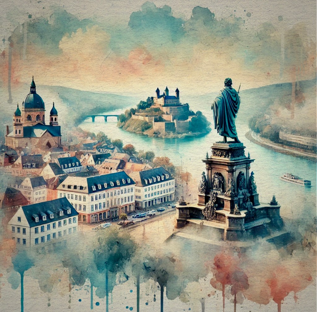 Koblenz er en av Tysklands eldste byer, strategisk plassert der Rhinen og Mosel møtes. Byen har en historie som strekker seg over 2 000 år og er kjent for sine imponerende bygninger, festninger og vakre elvepromenader.