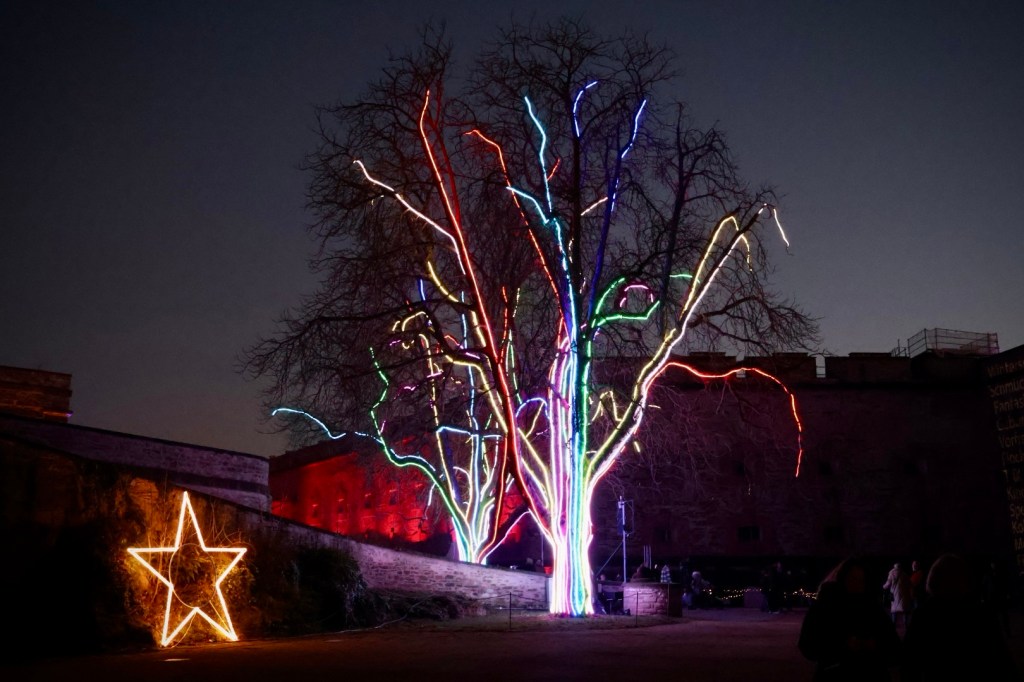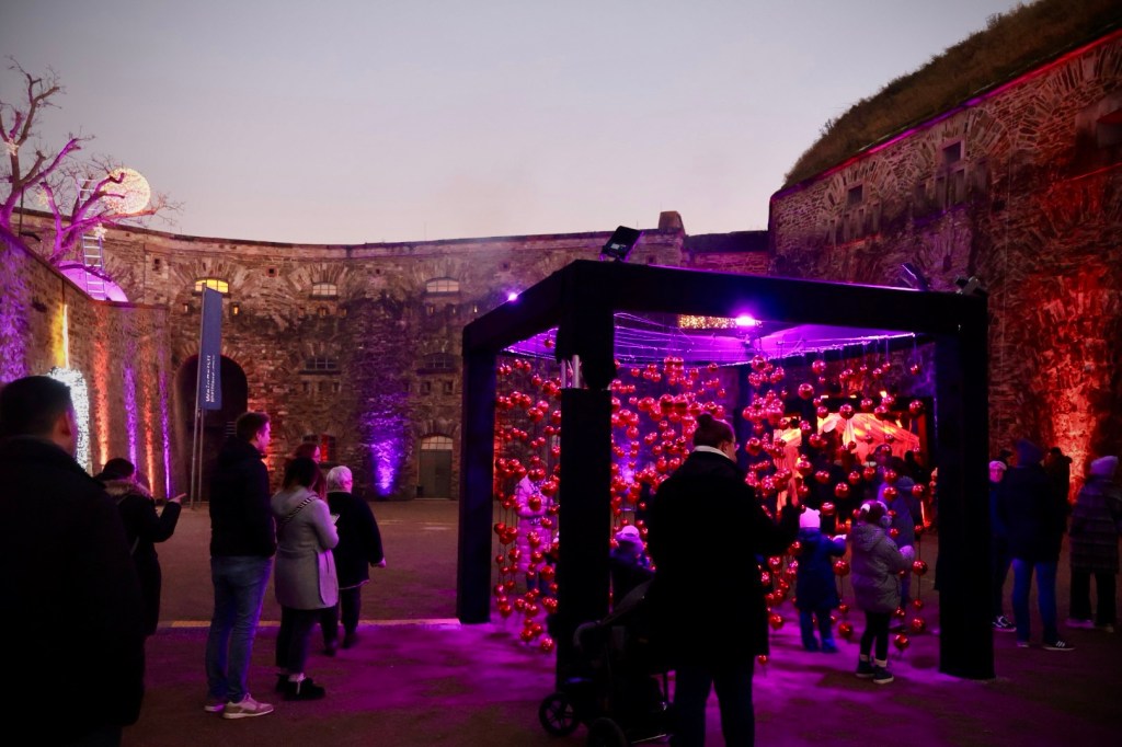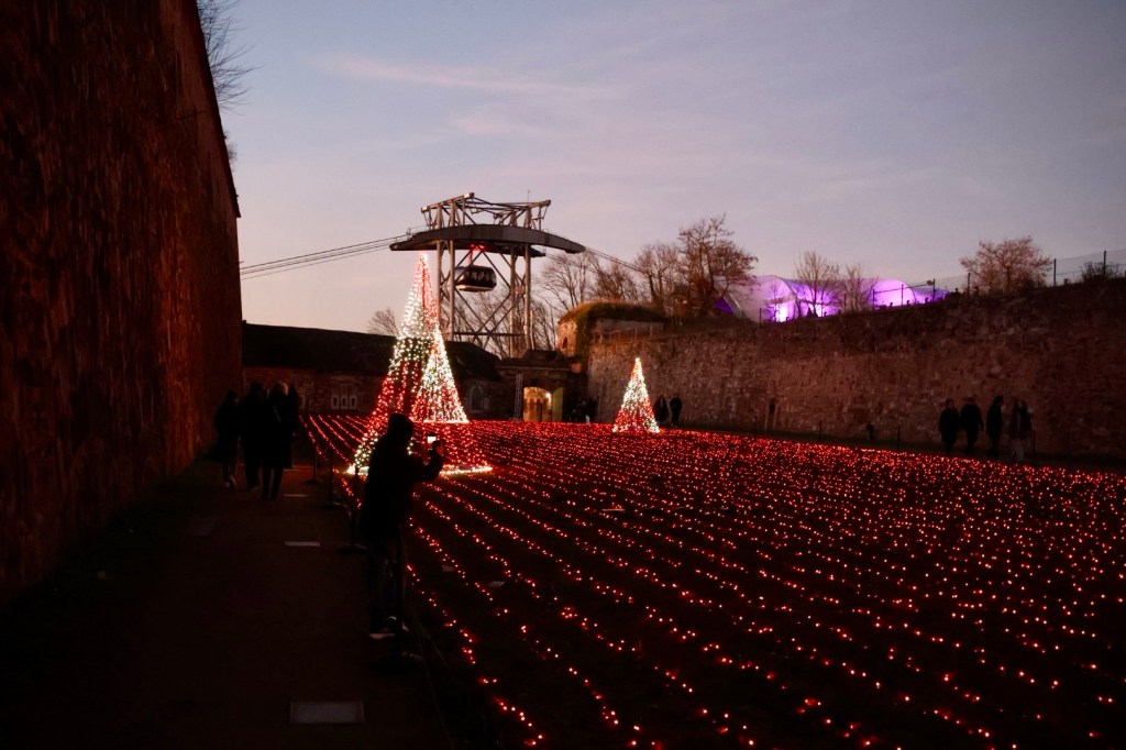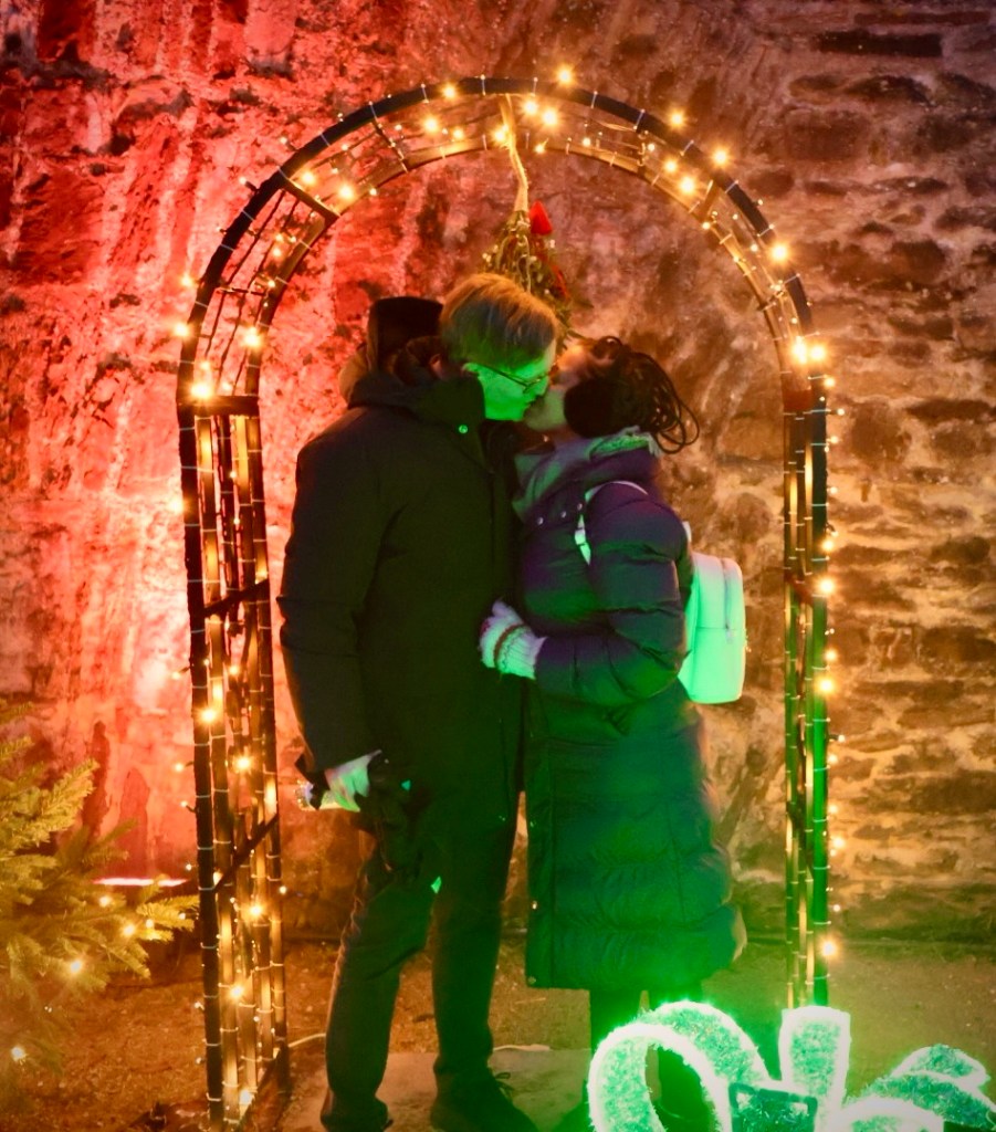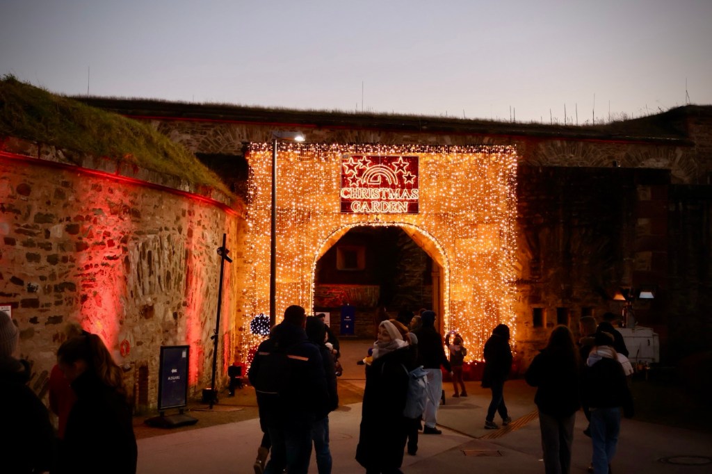 At the top, we explored the Christmas Garden, an impressive light installation. The fortress was filled with thousands of lights in all shapes and colors, creating a magical atmosphere. We wandered around for a couple of hours, soaking it all in,