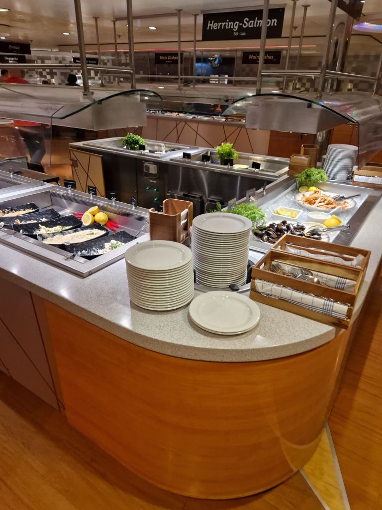 Middagen ble i bufférestauranten, hvor vi spiste litt for mye, som seg hør og bør på buffé. Resten av kvelden ble tilbrakt på lugaren med en tidlig kveld. Stitch var også fornøyd med dagens eventyr.