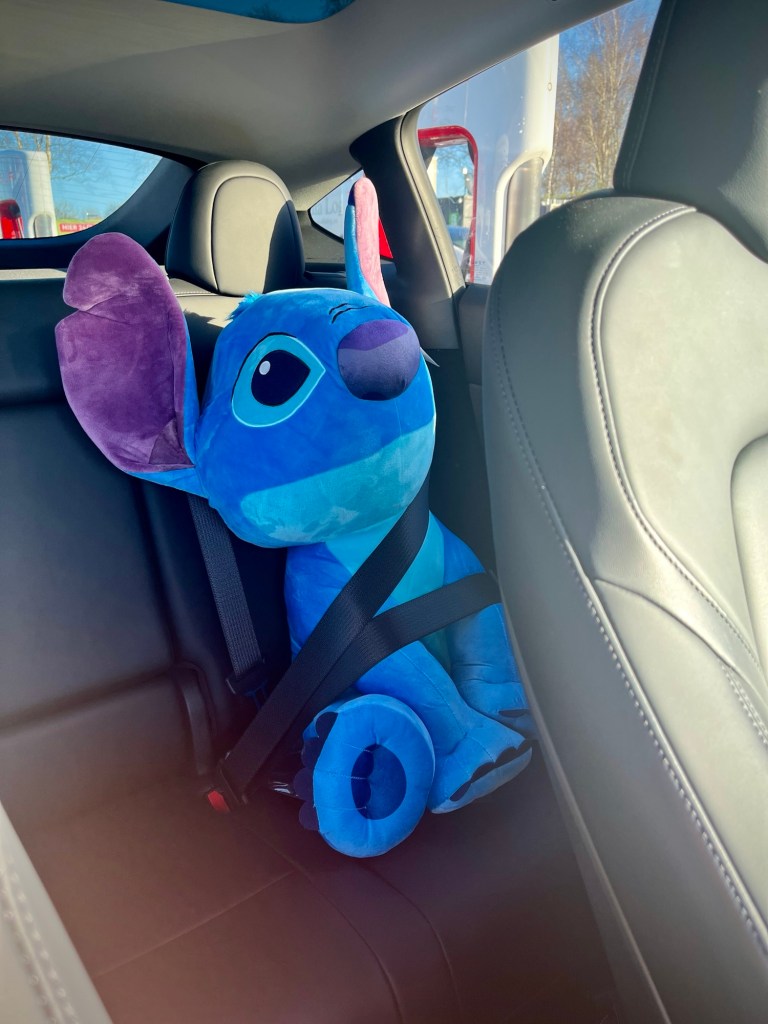 Etter frokost pakket vi det siste i bilen, og Stitch ble plassert strategisk i baksetet som turens maskot. Med bilen klar og humøret på topp startet vi hjemreisen.
