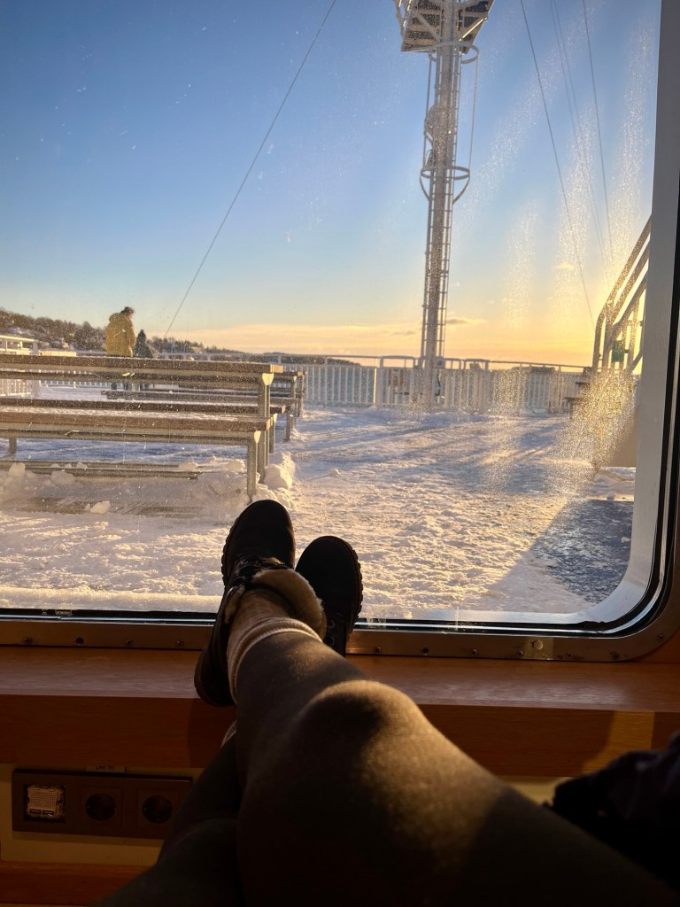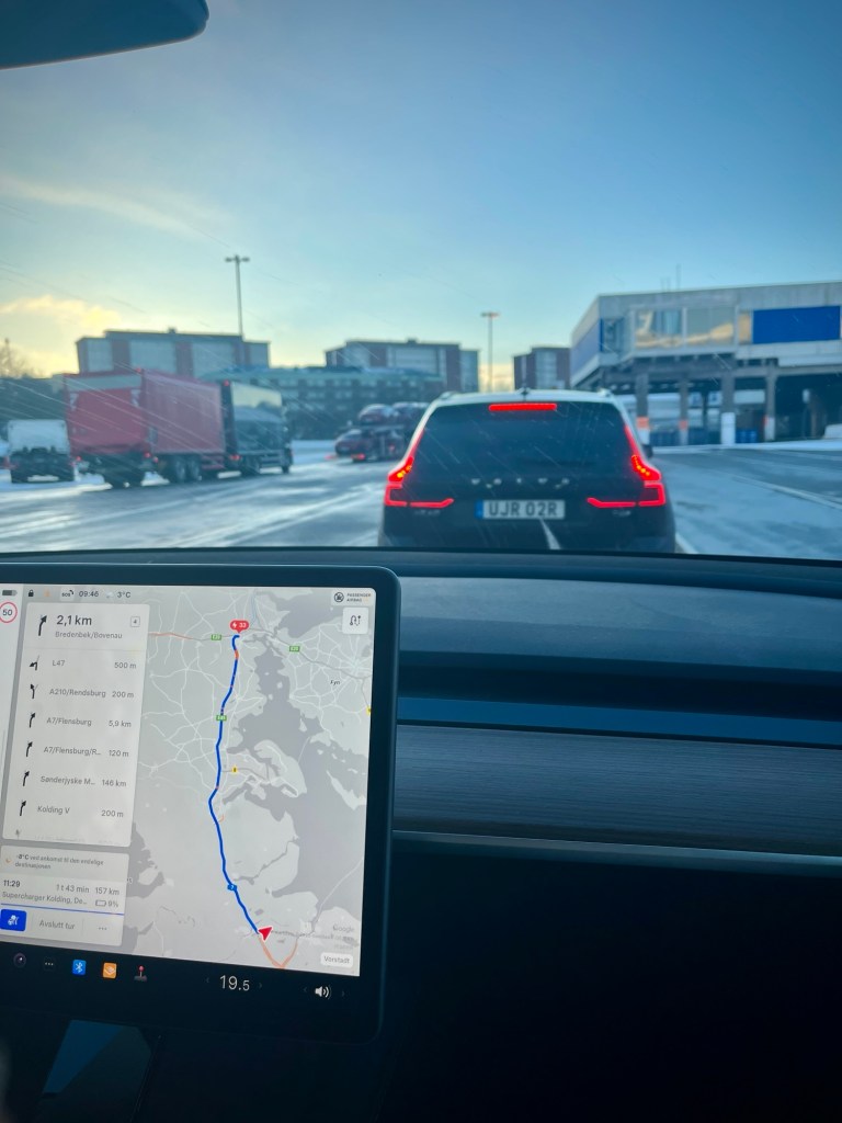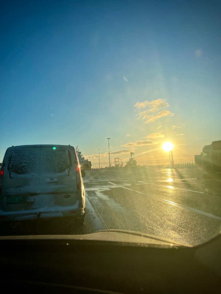 Båten ankom Gøteborg rundt klokken 10, litt forsinket, men vi var glade for å sette føttene på fast grunn. Etter et par kreative feilkjøringer gjennom Gøteborg (som vi nå kaller en “sightseeing-tur”), fant vi E6 og satte kursen hjemover. Snø og vind gjorde veien treg, men vi klarte oss.